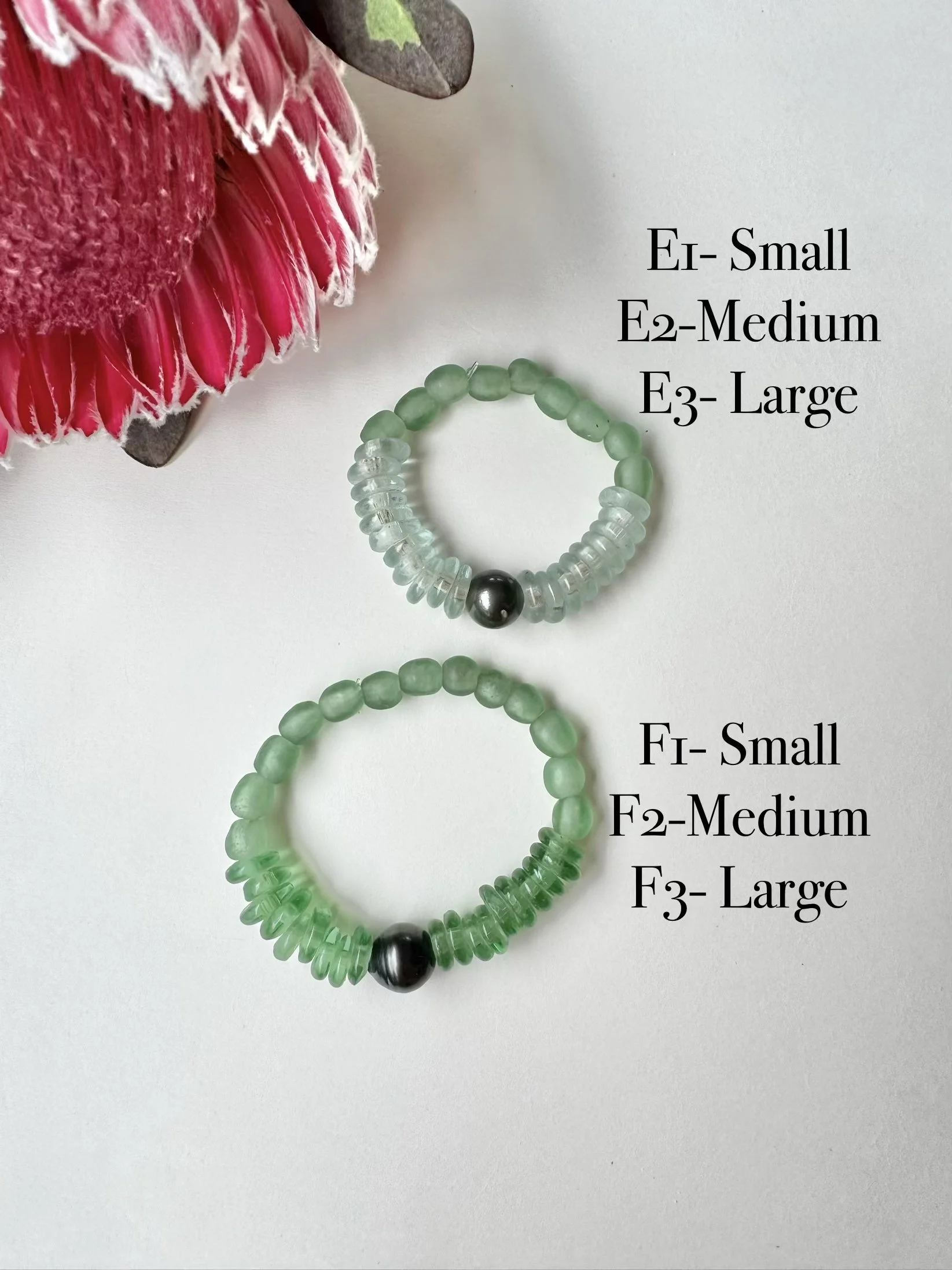 Durable elastic cording, 3 sizes available, each with a Tahitian pearl.